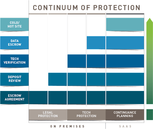 Mitigation of the risks outlined above generally fit into one of the three positions (Legal Protection, Tech Protection & Continuance Planning) detailed on the continuum below.